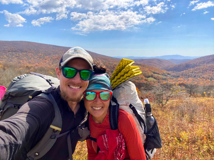 - Body transformation: we’ve gotten a lot of questions about what changes we’ve noticed in our bodies, specifically in terms of weight loss. Neither of us entered this hike with a goal of losing weight. We just wanted to feel healthy and strong, which we have. That said, yes, both of us have lost weight, In the first couple of months, Lotus gained muscle and lost fat, which pretty evenly offset. About halfway through, though, her hiker hunger kicked in and in Virginia, she weighed herself and found that she was down about 10lbs. Stretch actually gained back weight after losing about 10lbs early in the thru-hike. He has added protein powder to his daily regimen to help his muscles recover and rebuild. Both of us have increased our caloric intake and are thinking about how we can maintain healthy body compositions through the finish.