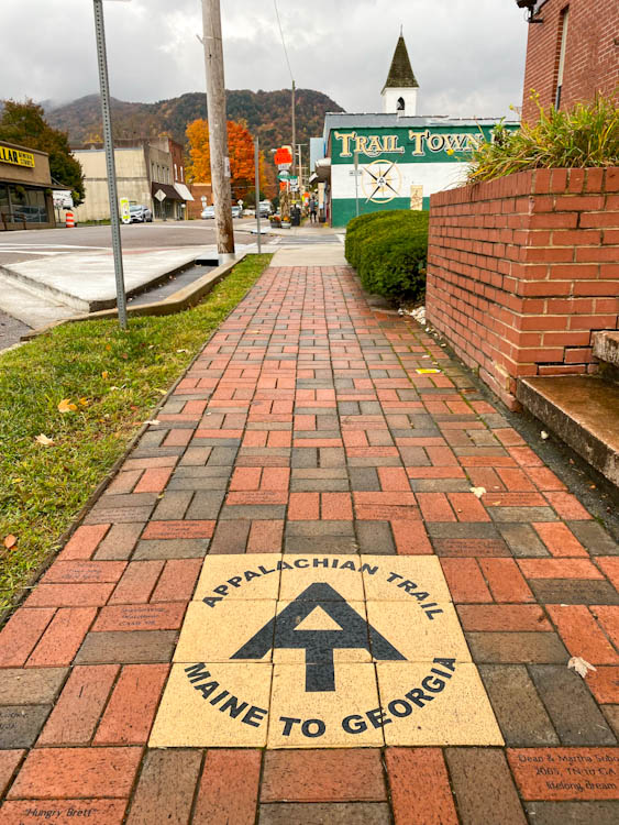 Damascus is known as “Trail Town USA” because many trails intersect there, it is home to Trail Days, and is also the first town in Virginia for NOBOs and the last for us SOBOs. We only had 8.5 miles to hike this morning (yes, we are aware of how ridiculous it sounds to say “only”), so we got to town by noon before the rain started. We hiked down switchbacks descending a steep open forested hillside and then through denser forest under peak fall foliage. Instead of a green tunnel, we’ve had a yellow and orange tunnel recently. On the way to town, we passed Wolfram (who we met the day before), Falcon, and Masta P. One of them reminded Lotus that a Lotus is not only a growing flower but also an awesome F1 racing car! She is a fast hiker so we love the double meaning of her trail name. When we rolled into the Broken Fiddle Hostel, we were greeted by Tick Bite, who we hadn’t seen in a couple of weeks! Lotus got her last pair of shoes and threw her old shoes up in a tree at Boots Off (on the first try, she wants everyone to know). Then, we saw No Kiddin, who we hadn’t seen since Harpers Ferry! Slowly, more hikers we knew rolled in: Ducky, Gravy, and Wolfram. Reuniting with hikers we haven’t seen in a while is such a beautiful part of the trail. We drank beer and played darts together before going out to dinner. together We even ran into Rocky and Tumbleweed at dinner! All in all, this was a great way to finish our time in Virginia. Knowing that we only have 3 states left is bittersweet and we are really beginning to process what it will mean to finish this thru-hike in less than a month.
