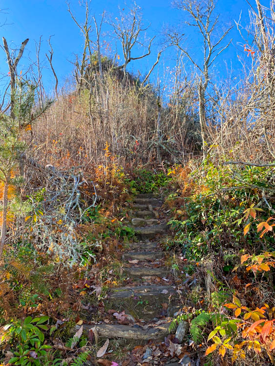 Both of us slept better last night than we had in a long time. Thank goodness. We tried to eat every last bit of leftovers from the fridge before our shuttle ride to head back to the NOC. We knew today was going to be a tough one with over 6,000 ft of elevation gain, most of that in the first half of the day. Getting into a mental headspace to tackle this was essential. Both of us listened to podcasts and music and were really proud of how consistent our pace was throughout a very sustained climb with a few steep sections. Today was the last day of this whole thru-hike that we’d have such substantial elevation gain and knowing that motivated us to keep going with a positive attitude. We climbed a viewing platform on Wesser Bald for good views, but it’s all a little drab now that most of the leaves have totally fallen. The last big climb of the day to Wayah Bald felt like it lasted a lifetime and got super steep toward the top! At 4:00pm after ascending all day, a 1,500 foot climb is tough on the body and mind. But, when we got to the top, we were rewarded with incredible views, a cool stone tower, and a group of visitors who gave us tangerines. Wow, vitamin C tasted good – no scurvy here! Then, another family of four came up and were absolutely flabbergasted that we had hiked from Maine and had been out here for over 4 months. They took our trash to throw away and proceeded to talk about our accomplishments loudly as they walked away. Moments like these remind us what an incredible thing we are doing. It can be easy to forget that when you are so immersed in it.